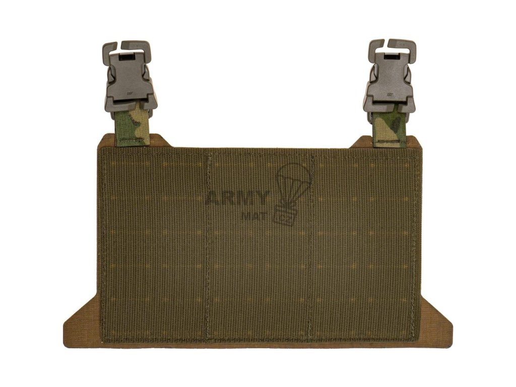 Slouží jako modulární čelní část vesty, která umožňuje uchycení zásobníků nebo dalšího vybavení podle provedení. Díky rychlému uchycení lze panel snadno vyměnit nebo přizpůsobit konkrétnímu účelu použití.