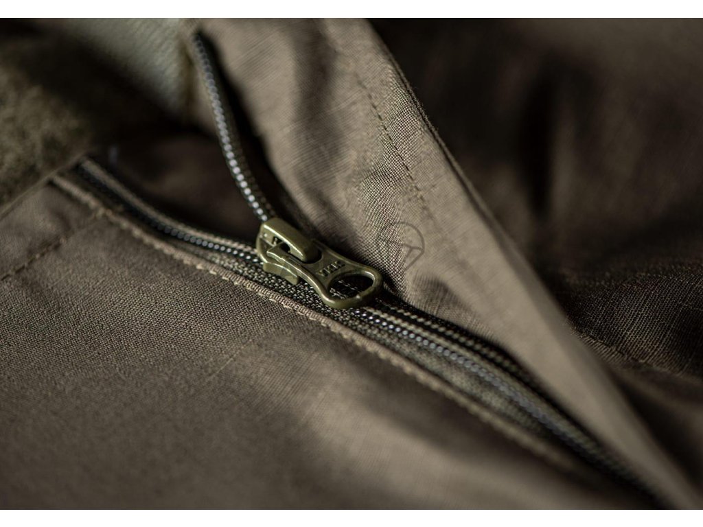 Vpředu najdeme kvalitní YKK zip se zapínáním na suchý zip. Pas a konce nohavic je možné regulovat díky nastavovacím páskům.Velké poutka na opasek umožňují použití široké škály taktických opasků.